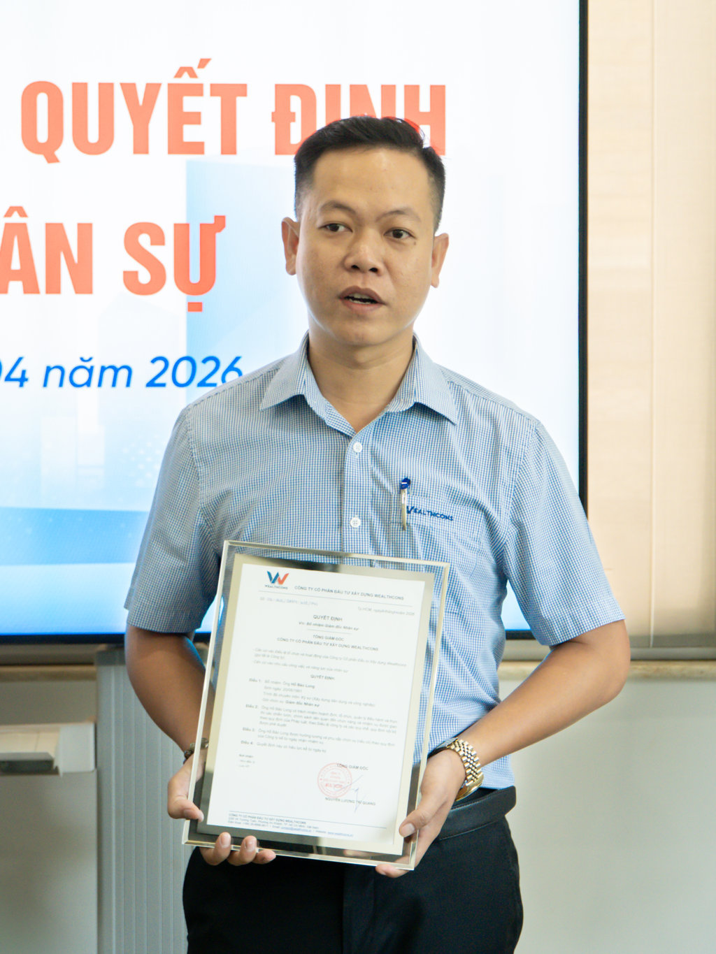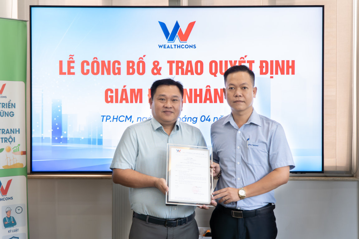Tại Wealthcons, con người luôn là nền tảng cốt lõi của sự phát triển bền vững. Để chuẩn bị cho những bước tiến đột phá trong chiến lược kinh doanh và nâng cao chất lượng nguồn nhân lực, Ban Lãnh đạo Công ty trân trọng thông báo quyết định bổ nhiệm nhân sự mới: