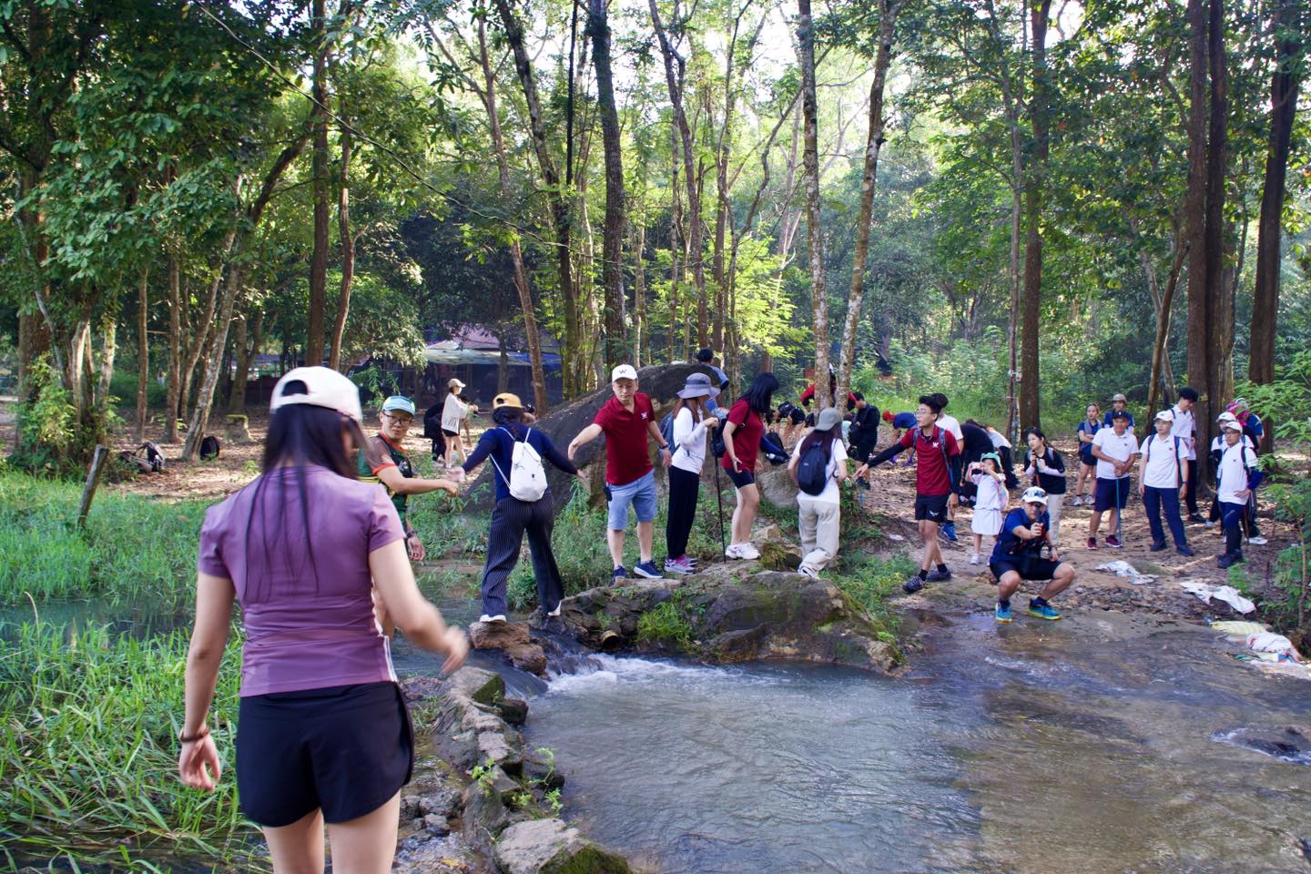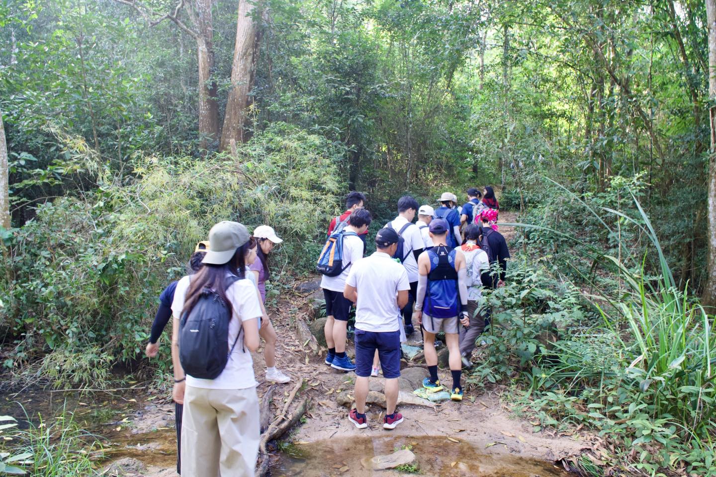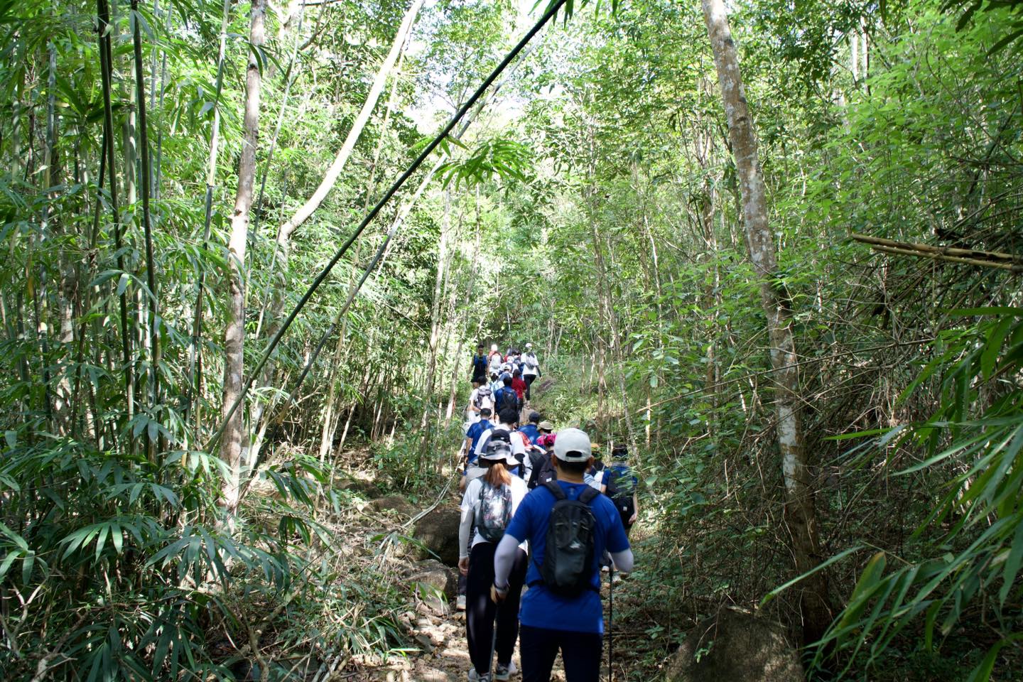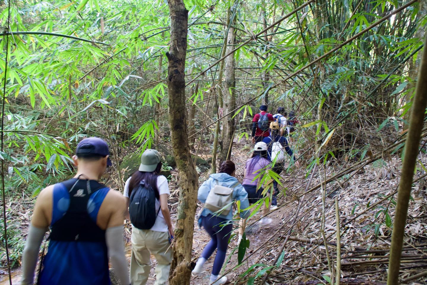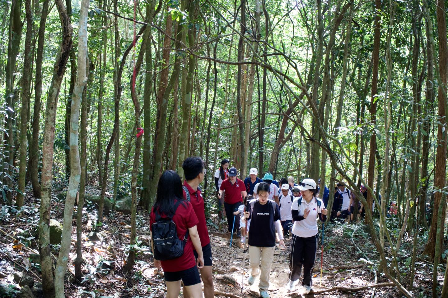 Khởi hành từ rất sớm, các thành viên nhanh chóng bắt nhịp với không khí trong lành của núi rừng Bà Rịa – Vũng Tàu. Cung đường trekking thoải nhẹ, thời tiết mát mẻ tạo nên trải nghiệm dễ chịu, phù hợp với mọi độ tuổi và thể lực. Hành trình trở nên sôi động hơn với những câu chuyện, tiếng cười và sự hỗ trợ lẫn nhau trên mỗi đoạn đường.