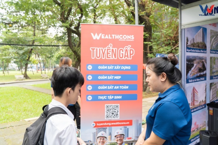 Job Fair 2025 at Ho Chi Minh City University of Technology (HCMUT – VNU) concluded with impressive highlights as the Wealthcons booth recorded nearly 1,000 check-ins, along with hundreds of students visiting, interacting, and experiencing our showcase. A key attraction this year was the AI Application developed by Wealthcons, designed to support engineers in daily operations, optimize workflows, and enhance construction efficiency. In addition, the mini game simulating earthwork and site preparation created an energetic and engaging atmosphere, reflecting the dynamic and innovative spirit of a modern construction enterprise.